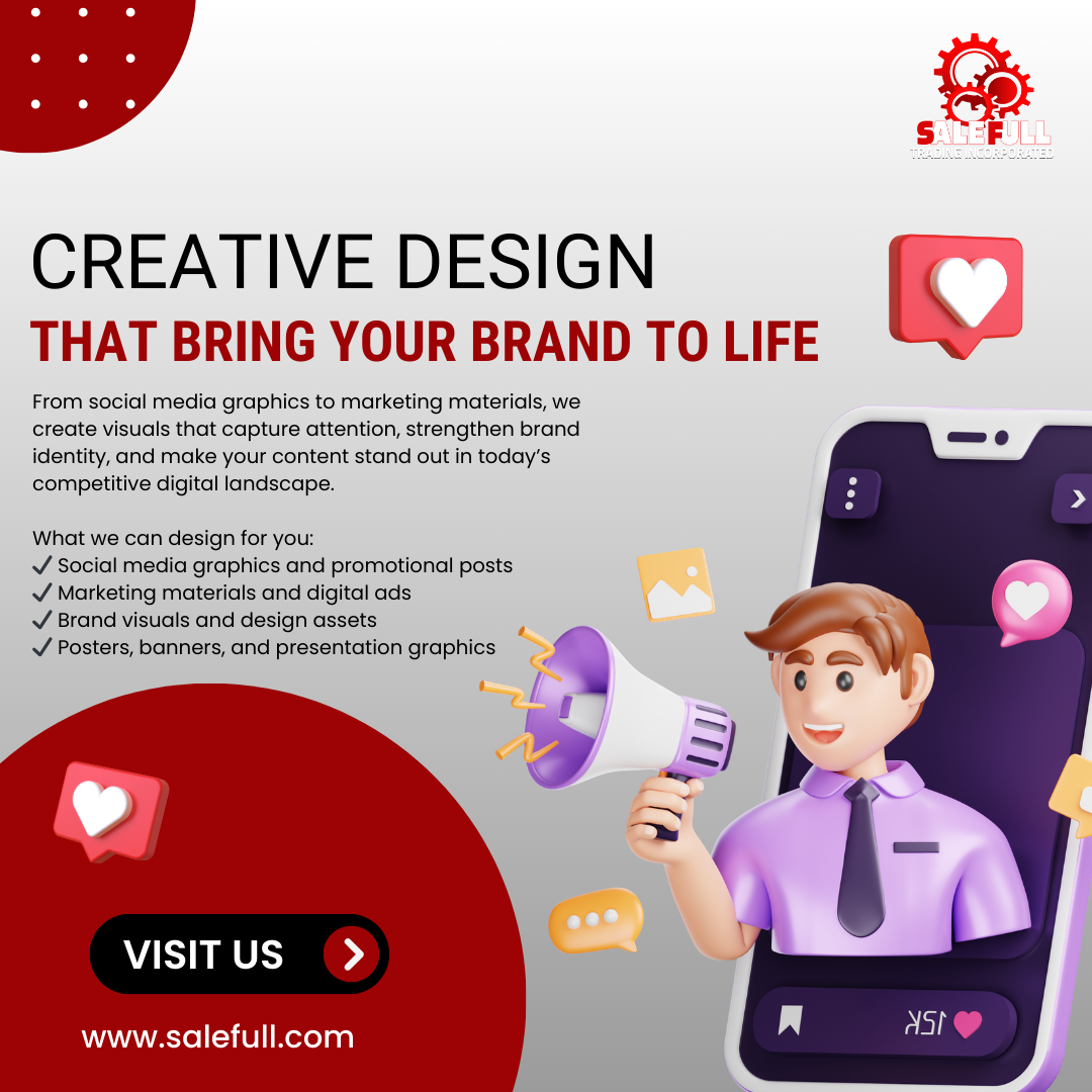 Strong visuals make a lasting impression. At Salefull, our Graphic Design services help businesses communicate their brand message through professional, eye-catching designs.